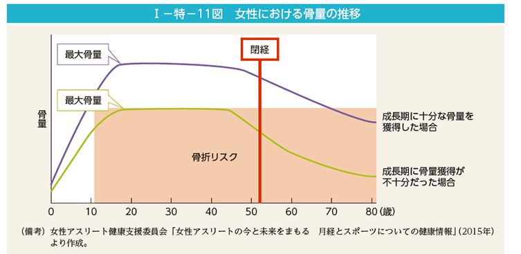 引用:I-特-11図 女性における骨量の推移 | 内閣府男女共同参画局