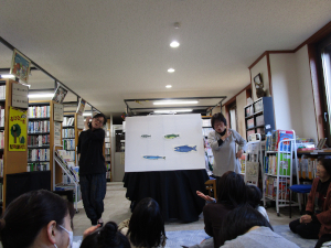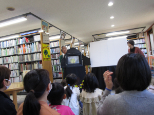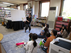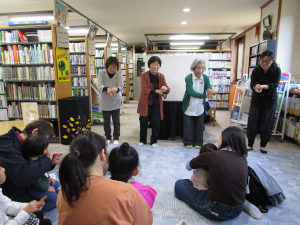 平成11年7月から、紙芝居や絵本の読み聞かせ・パネルシアター上演などの活動をしている地元のお母さんたちのボランティアグループ ”おはなし ぐー ちょき ぱー„ の方たちに、おはなし会等を通じて図書館の事業に協力していただいています。令和7年9月に、おかげさまで295回目を迎えました。