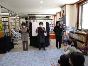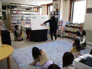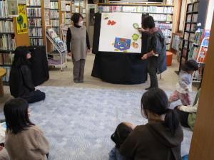 平成11年7月から、紙芝居や絵本の読み聞かせ・パネルシアター上演などの活動をしている地元のお母さんたちのボランティアグループ ”おはなし ぐー ちょき ぱー„ の方たちに、おはなし会等を通じて図書館の事業に協力していただいています。令和8年2月に、おかげさまで300回目を迎えました。