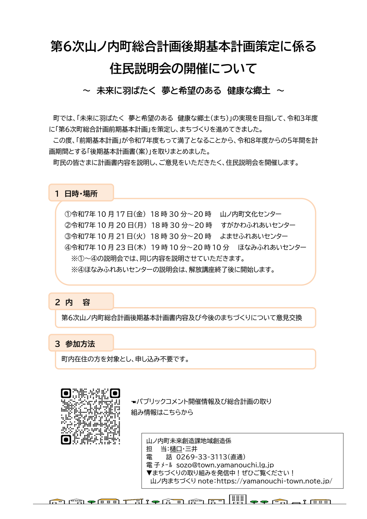 第6次町総合計画後期基本計画策定に係る住民説明会の開催について