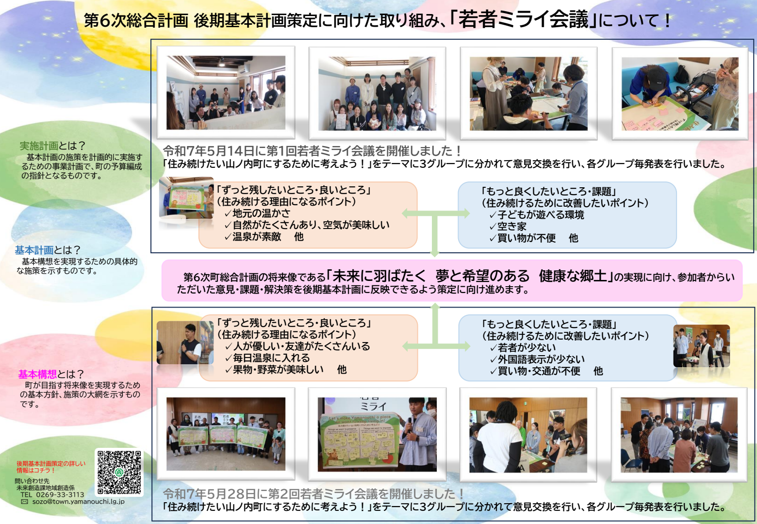 | 令和7年5月14日 | 第1回若者ミライ会議 | ・町内で暮らす若者を対象に開催 |