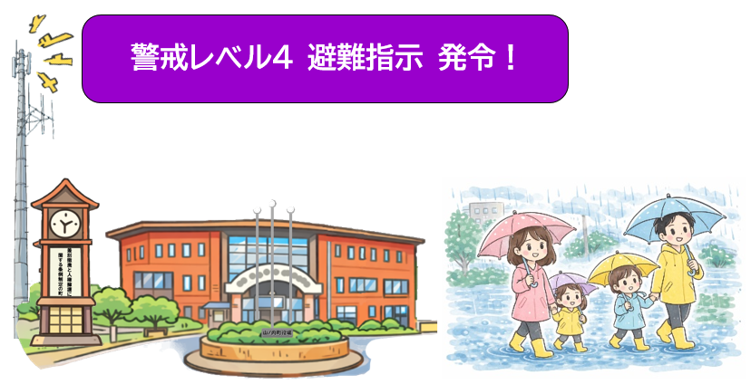 災害の危険が迫っている場合、町は避難情報を判断し発令します。